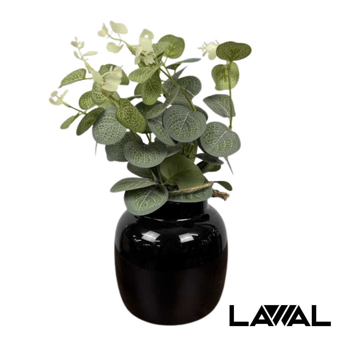 Se trata de una planta artificial decorativa con macetero, perfecta para añadir frescura sin mantenimiento a cualquier espacio. Consta de follaje verde artificial con hojas de textura realista y detalles en tono claro y oscuro. Macetero cerámico negro brillante, de forma redondeada y moderna, ideal para ambientes contemporáneos. Ideal para escritorios, estantes, baños o mesas auxiliares. BLANCO Y NEGRO