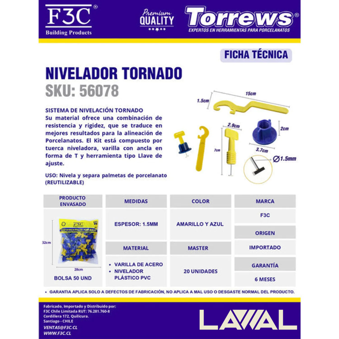 Kit Sistema de Nivelación Porcelanato y Cerámica Tornado F3C. MOJOSTORE